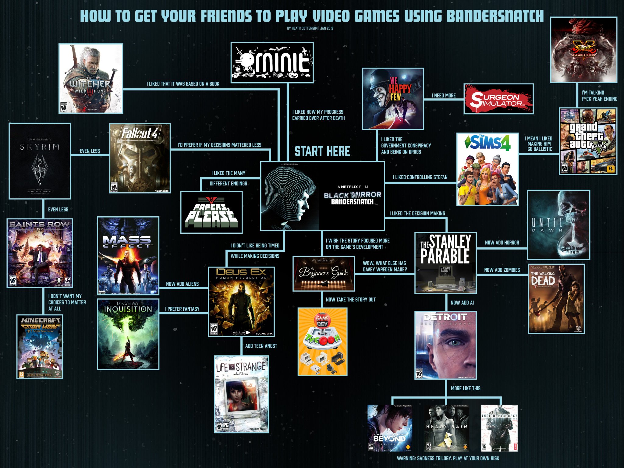 Discussions on Black Mirror: Bandersnatch (spoilers from 10:40 - 29:29), Wolfenstein II: The New Colossus, Hotline Miami, Hyper Light Drifter, how large is the video game industry (Part 2), and should games always strive to be fun?